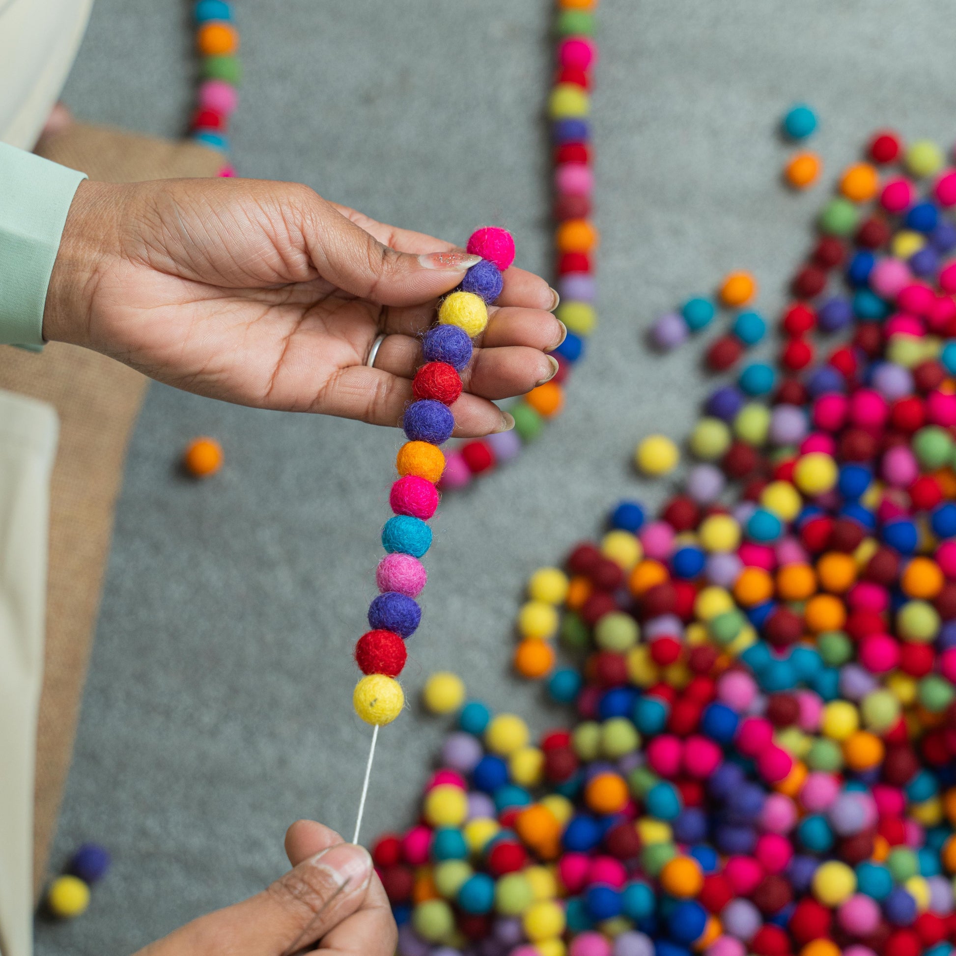 Slinger met viltballetjes in vrolijke multicolor-tinten. Heel leuk als decoratie in de kinderkamer! Past mooi bij de andere producten uit onze multicolor-lijn.